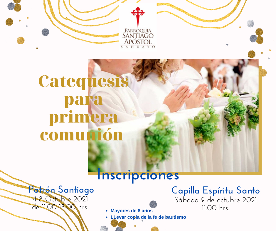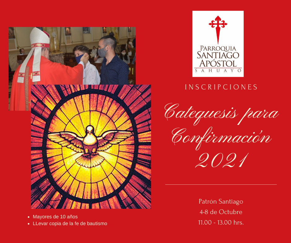 Las inscripciones serán en el Santuario del Patrón Santiago, del 4 al 8 de octubre de 2021, de las 11.00 a las 13.00 hrs y en la Capilla del Espíritu Santo el sábado 9 de octubre a las 11.00 hrs.