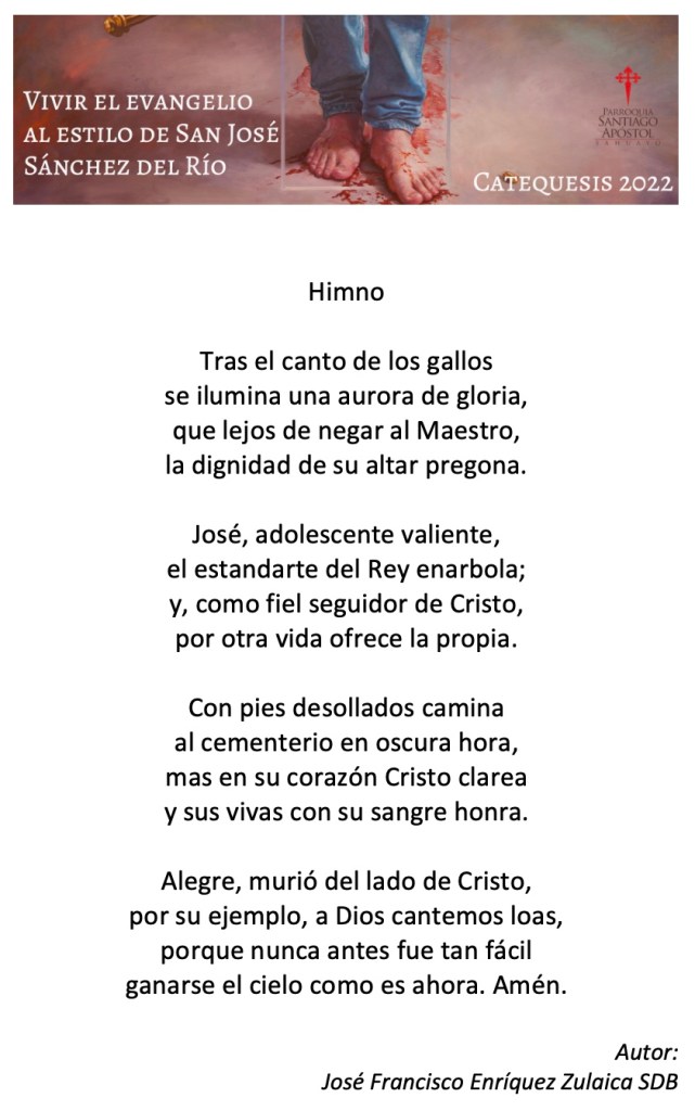 - Hoy vamos a aprender una hermosa oración en forma de himno que recién ha compuesto un joven sacerdote salesiano, originario de Zamora y que es un gran devoto de San José Sanchez del Río.